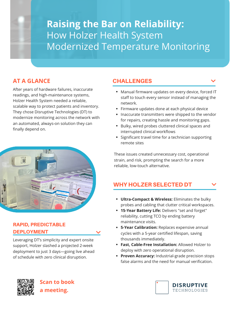 Discover how DT helped Holzer Health end temperature monitoring failures within 72 hours.